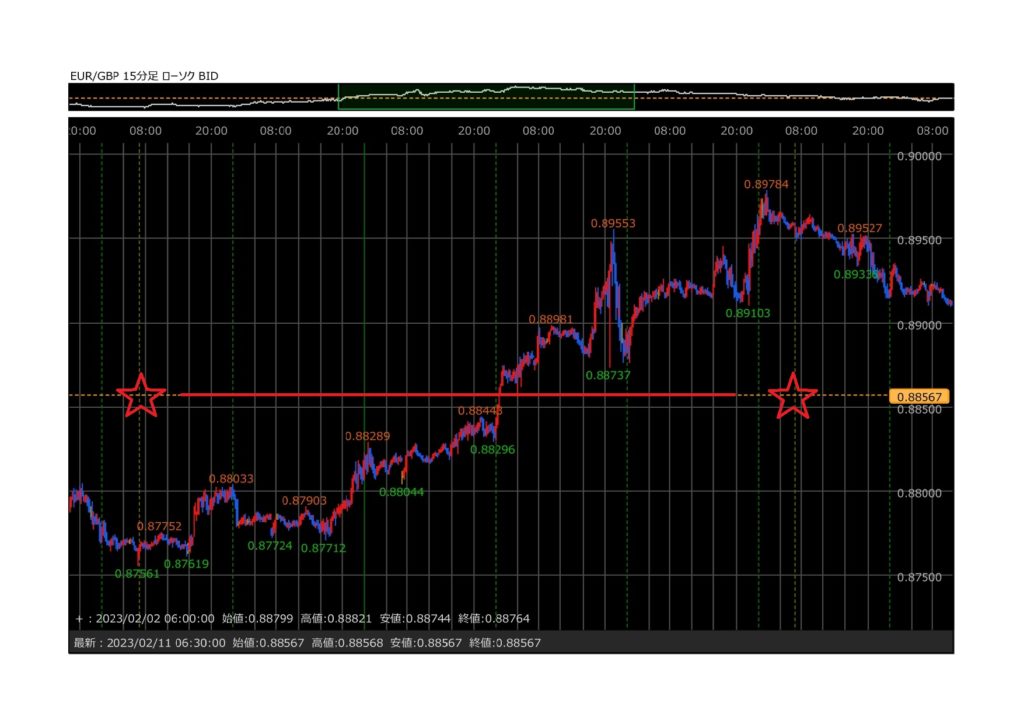 ・エントリー後全然戻りがなくて損失が拡大してくる場合は2回目の戻りでその前の戻りに近づいたら損切りする